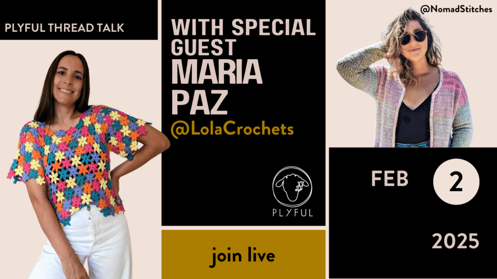 Get to know Maria’s life, design process and crochet journey with me! I am particularly excited because as Latino women living in a foreign country, mothers and crochet lovers, we might just have a lot in common!!