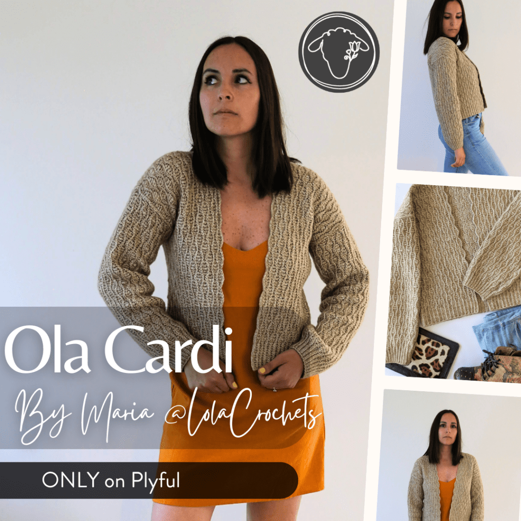Our featured Design for the month of February is Ola Cardi – a gorgeous cardigan with a really interesting stitch pattern that is lovely to make and wear!