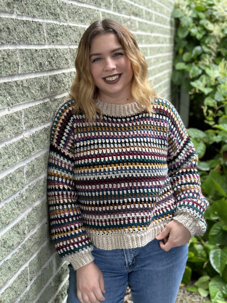 My name is Maura and I’m a fiber artist in Pittsburgh, Pennsylvania. I started crocheting about 17 years ago when I was 12 years old and haven’t stopped since. I started @mauramakesstuff in 2022 and within a year I was starting to design and create my own patterns! When I’m not crocheting, I enjoy concerts of all genres, craft breweries, road trips, thrift shopping, and snuggling with my cats, Gibson and Juniper.