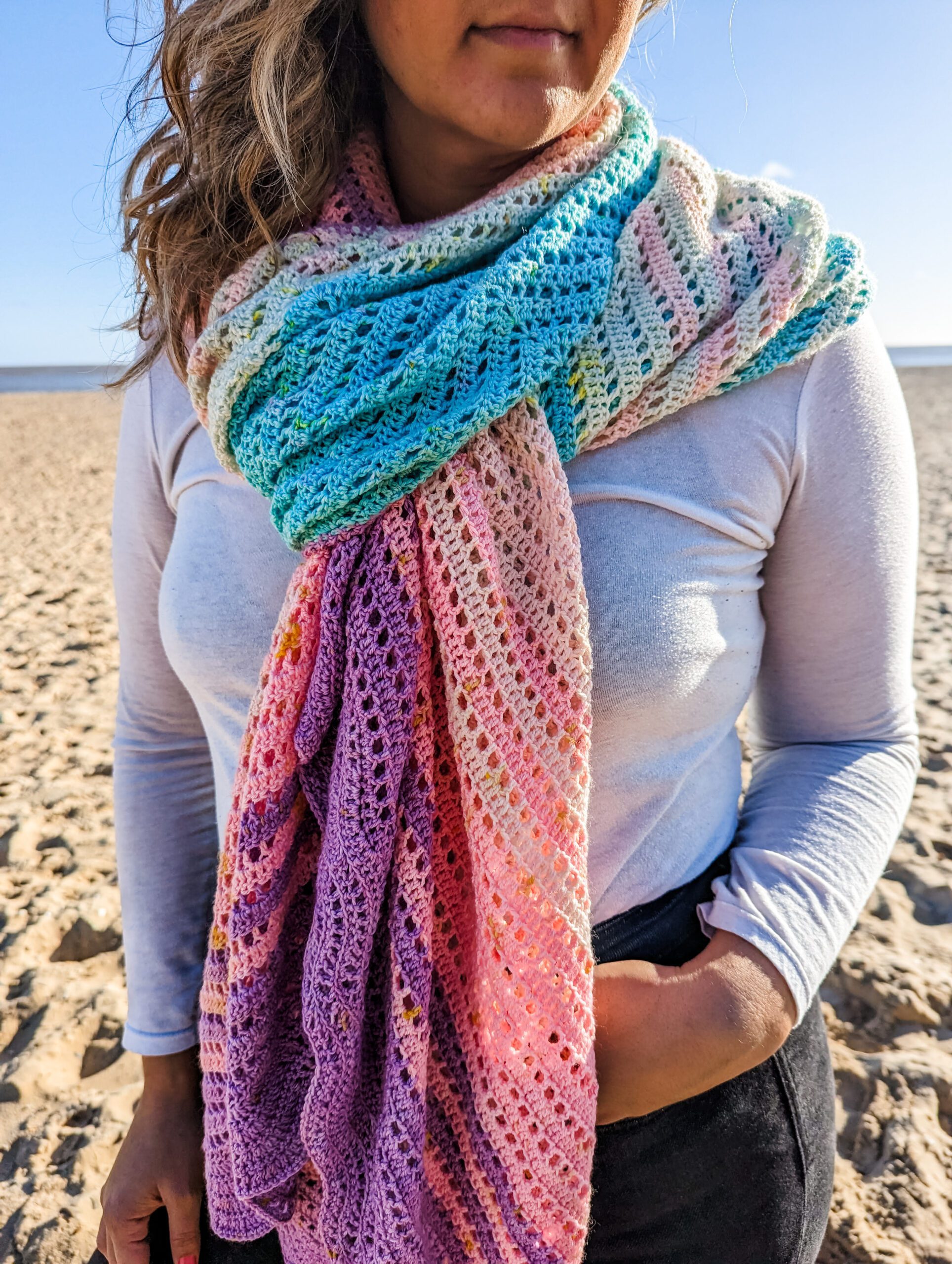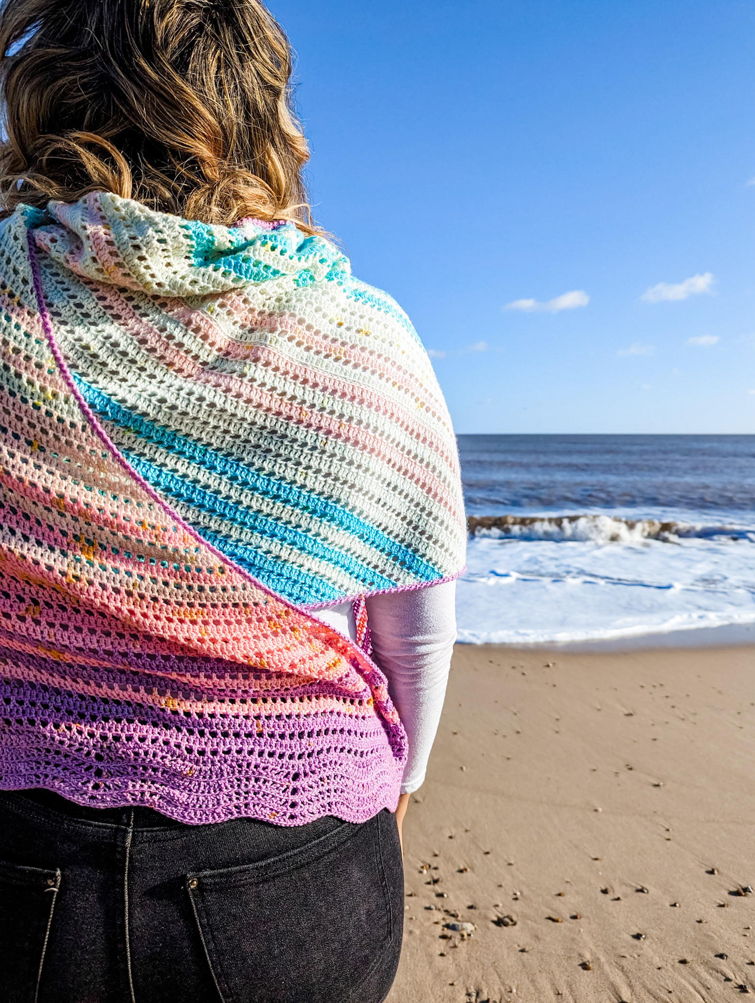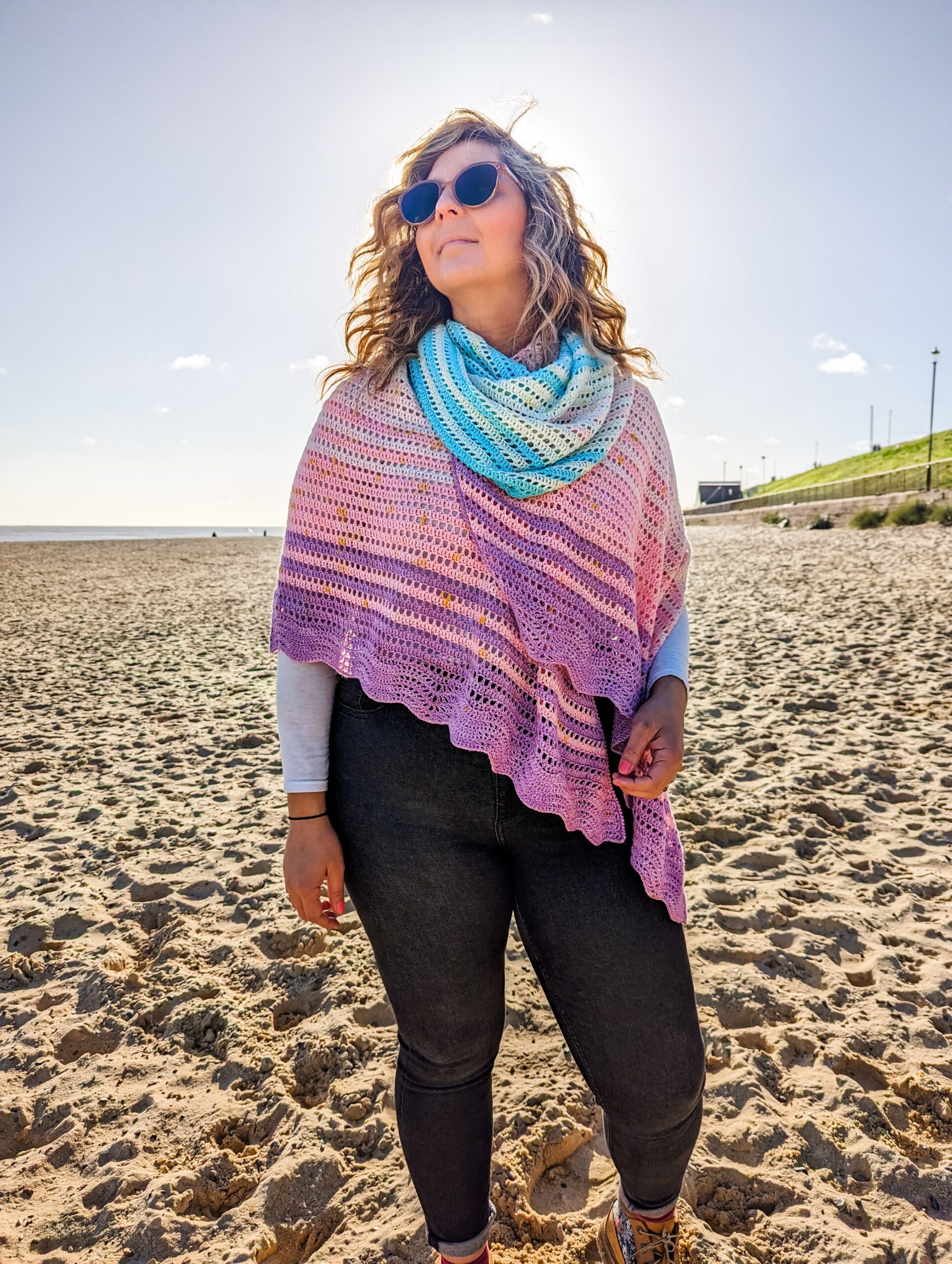 The Astrantia Shawl was named after the lovely, colorful flowers that bloom in spring. They come in all sorts of colors, including stripes with a lovely hue effect, making them the perfect namesake for this shawl. Astrantia, the shawl, is a wide shawl that can be made as a scarf or wider. Its shape is easy to wear around the shoulders and neck, and the way the colors transition creates stripes that produce an effective fade effect. With its easy construction and meditative stitch pattern, it is a very enjoyable project. Astrantia will definitely brighten your wardrobe while keeping you nice and cozy!