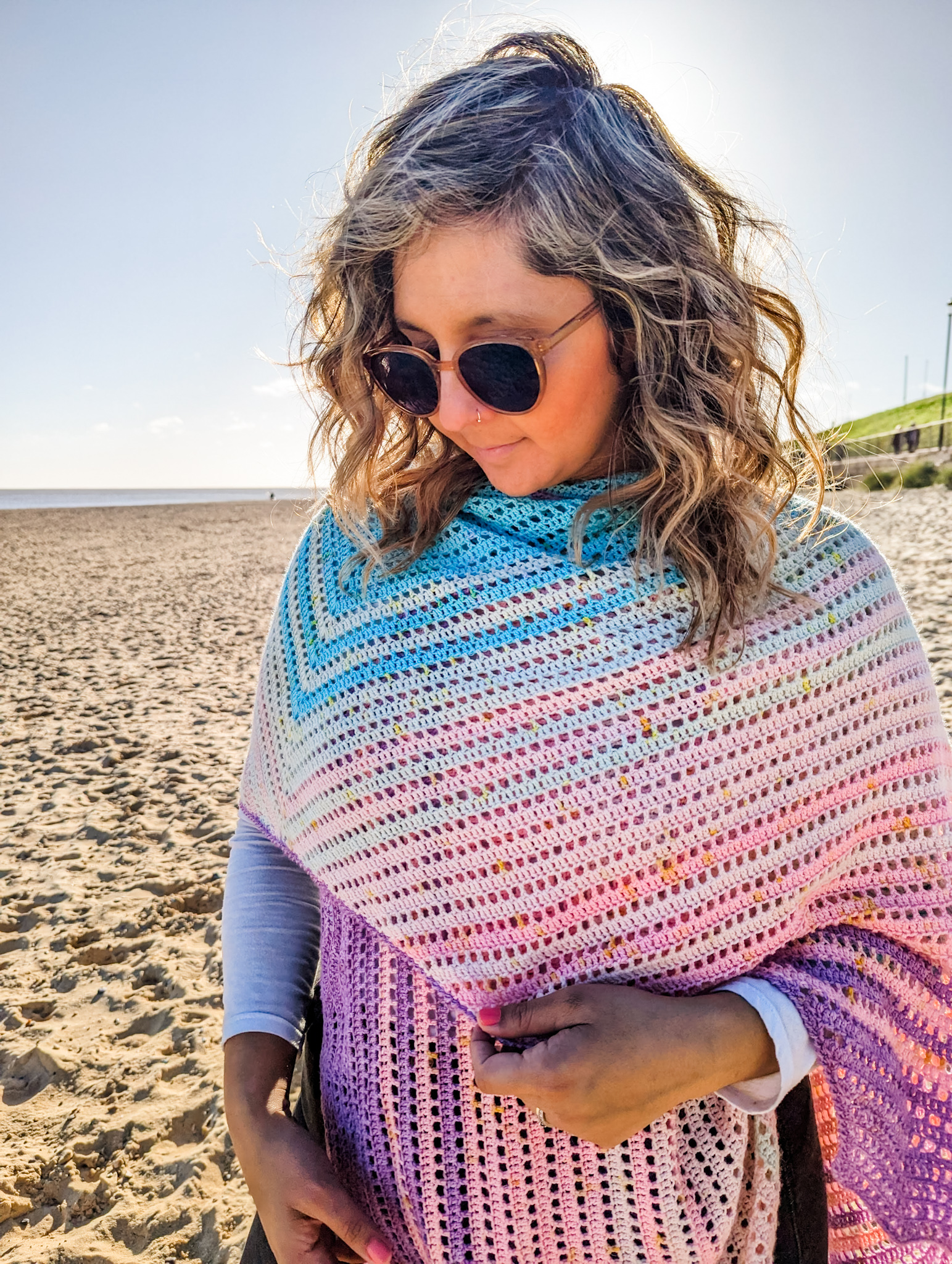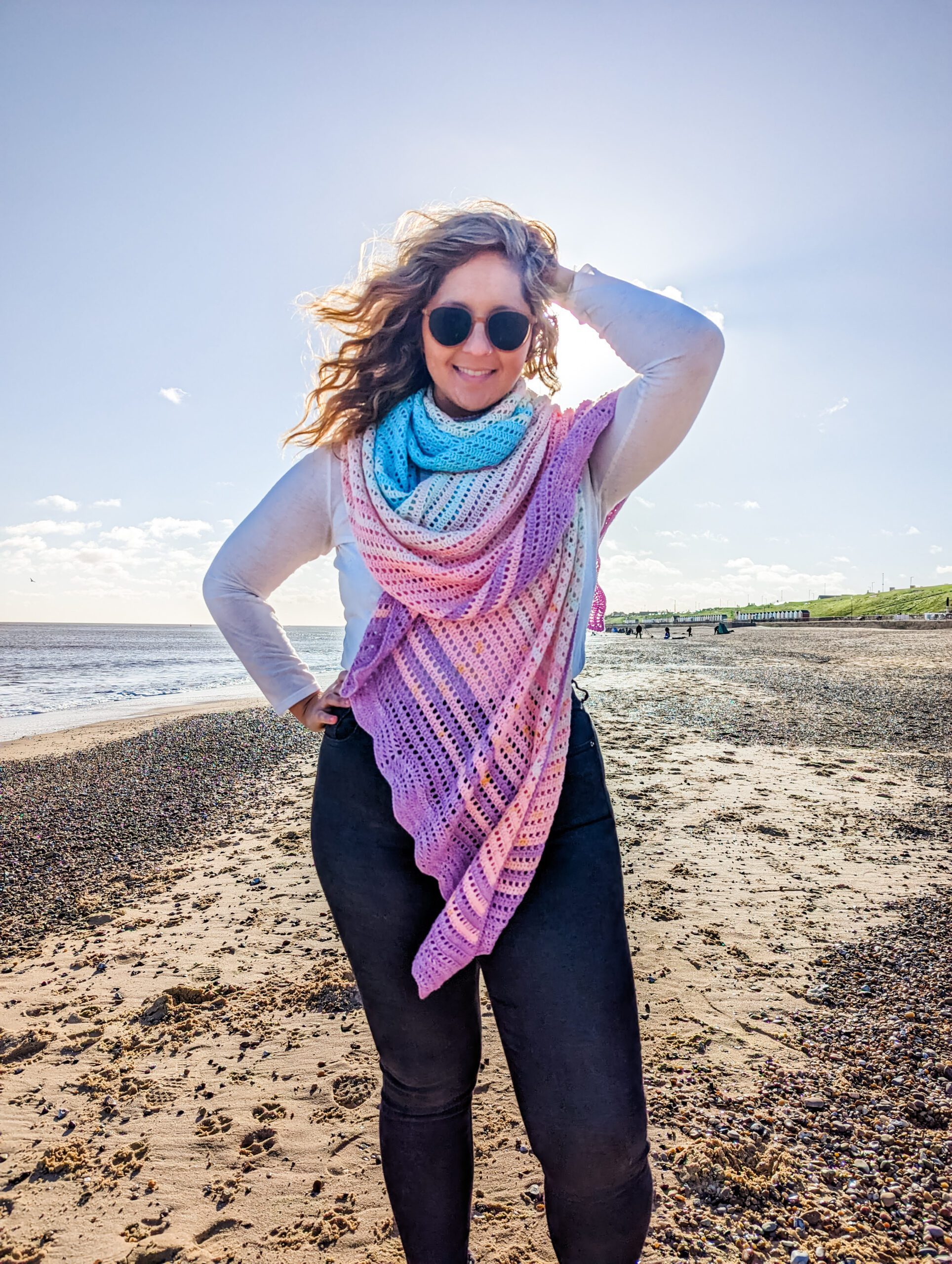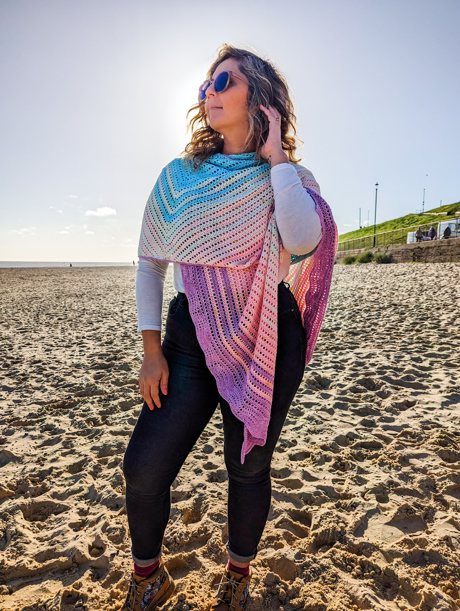 The Astrantia Shawl was named after the lovely, colorful flowers that bloom in spring. They come in all sorts of colors, including stripes with a lovely hue effect, making them the perfect namesake for this shawl. Astrantia, the shawl, is a wide shawl that can be made as a scarf or wider. Its shape is easy to wear around the shoulders and neck, and the way the colors transition creates stripes that produce an effective fade effect. With its easy construction and meditative stitch pattern, it is a very enjoyable project. Astrantia will definitely brighten your wardrobe while keeping you nice and cozy!