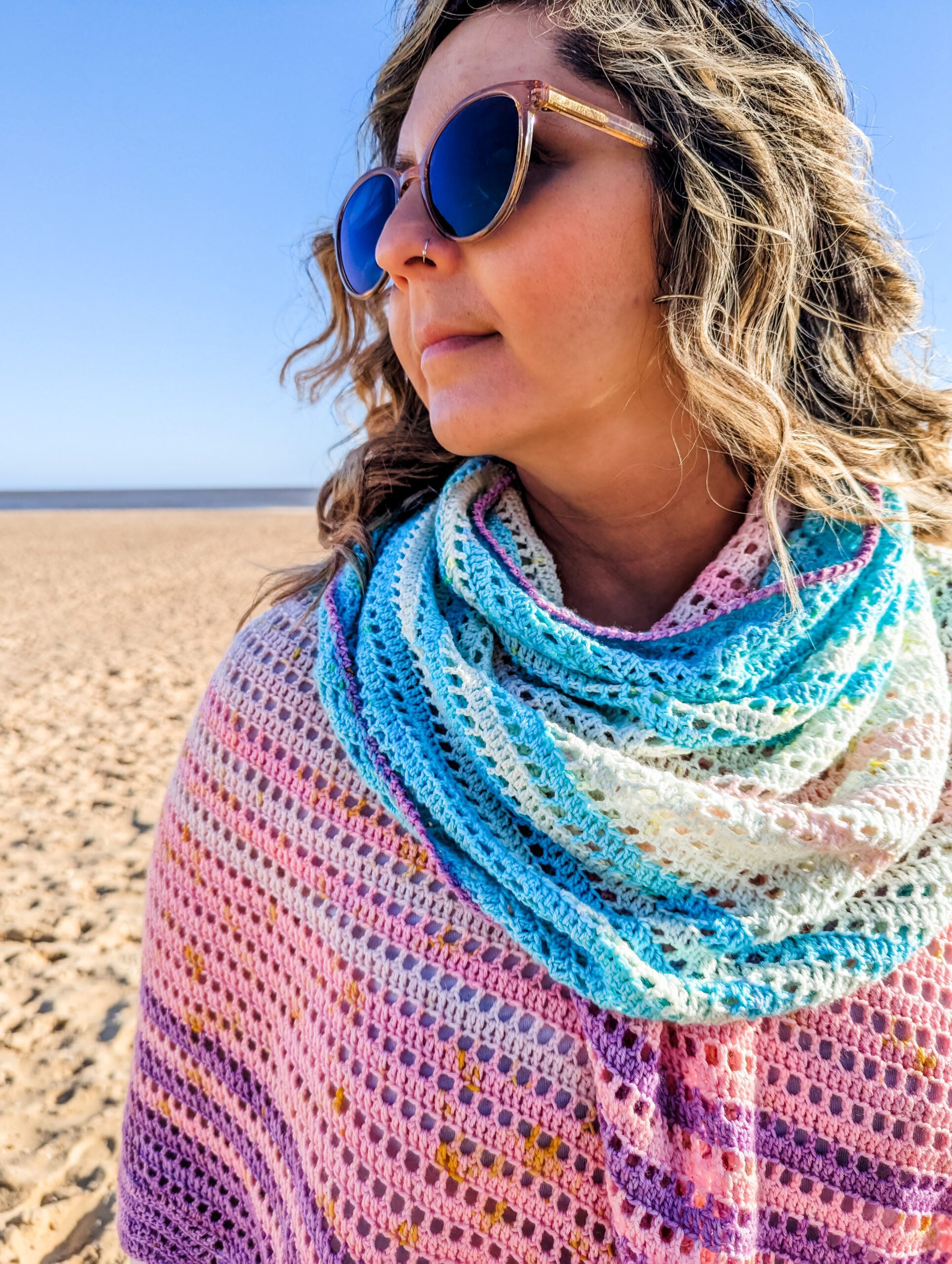Achieving the right gauge is recommended to make a shawl in the measurements stated in this pattern. However, given that this is NOT a garment pattern, gauge is not as important. Therefore, use your gauge swatch to confirm that you like the fabric created with the hook and yarn combo you have chosen to work with, and adjust as necessary. Yarn amounts required will vary with different gauges.