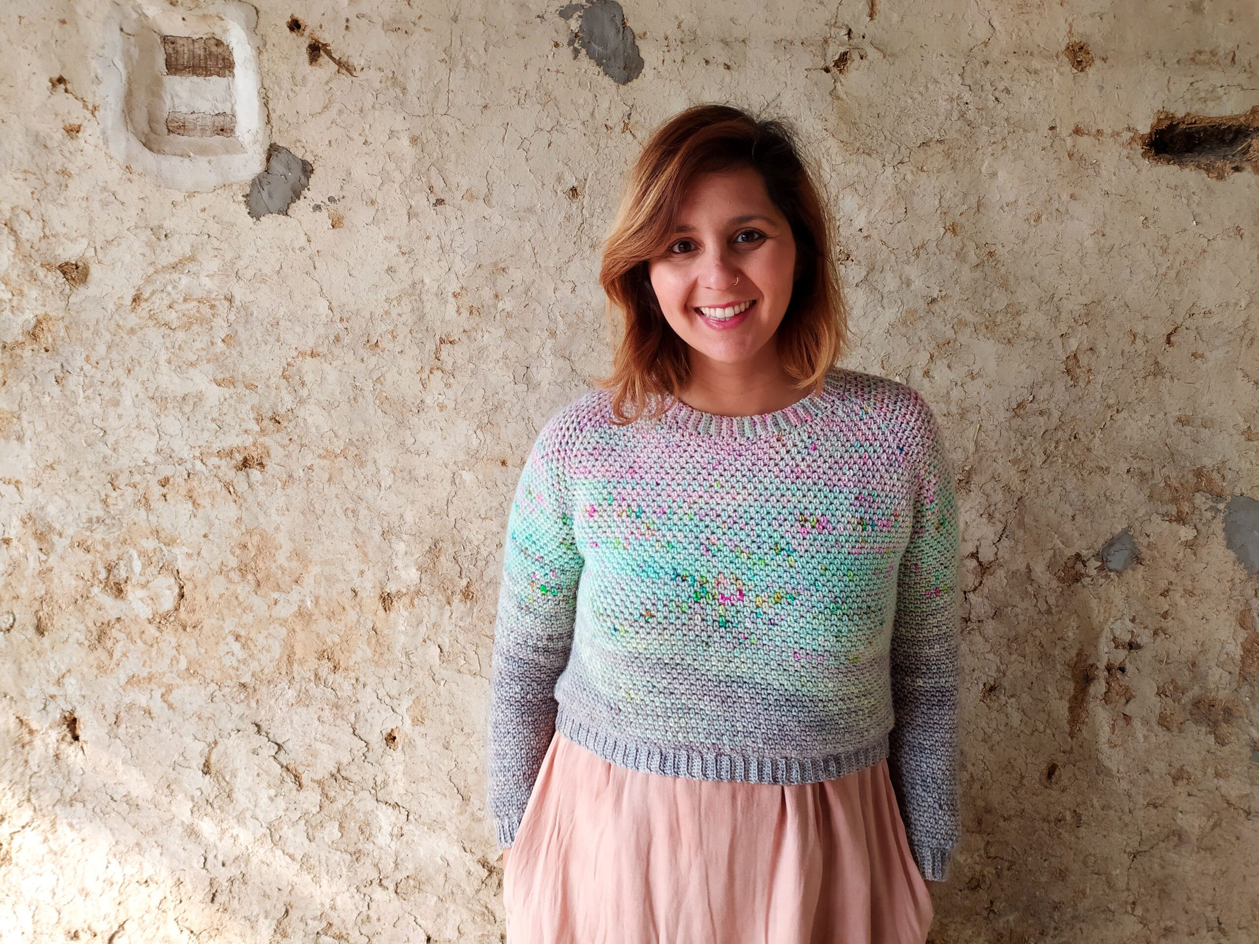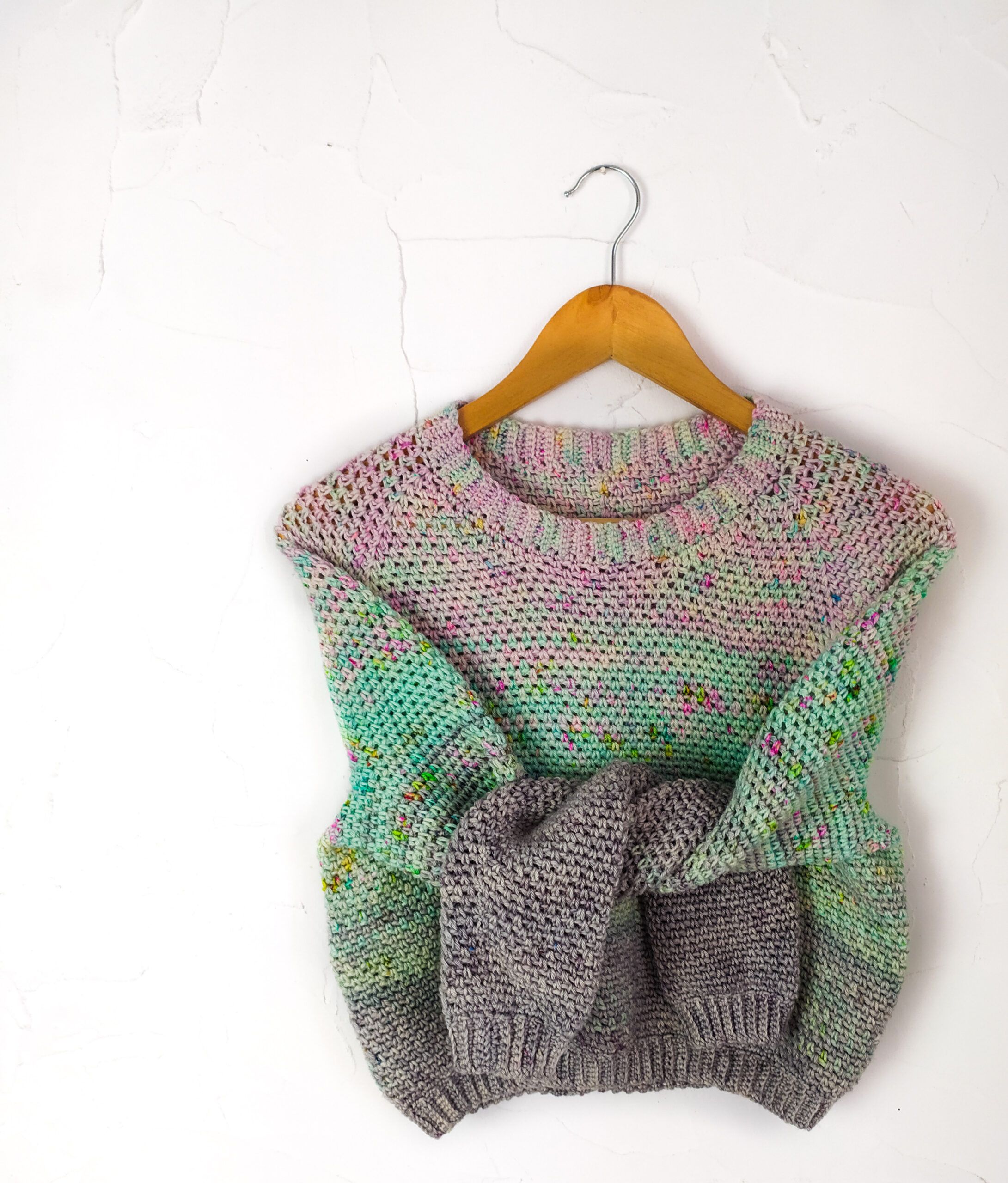 The Confetti Pullover is a celebration of childhood and color. It features a fading of color that resemble confetti falling.