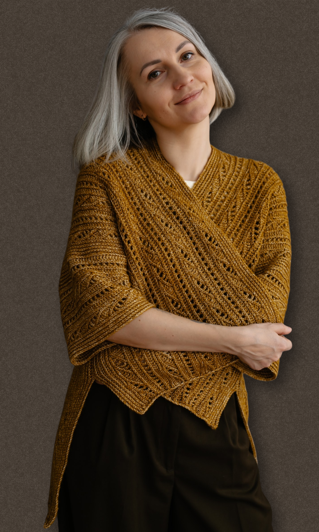 Delicate leaf motifs are woven into the design, celebrating the beauty of nature with every stitch. Worked sideways for an organic, seamless flow, this cardigan is crafted in sport weight yarn, making it versatile for layering across seasons. Available in eight inclusive sizes, the Everleaf Cardigan is a timeless piece that effortlessly complements any wardrobe.
