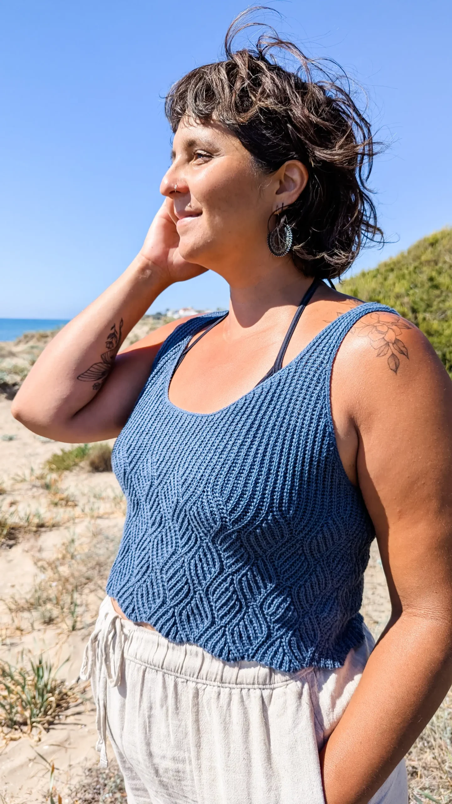 The Fiamma Brioche Crochet Tank is inspired by the flickering movement of flames—Fiamma meaning “flame” in Italian. Worked sideways in a squishy stitch that mimics knitted brioche, it’s as fun to make as it is to wear. To make things even smoother, the pattern includes helpful progress tables designed to take the pressure off pattern-reading and let you truly go with the flow. Whether you’re dressing it up or layering it casually, the Fiamma Brioche Tank is destined to become a favorite—both on your hook and in your wardrobe.
