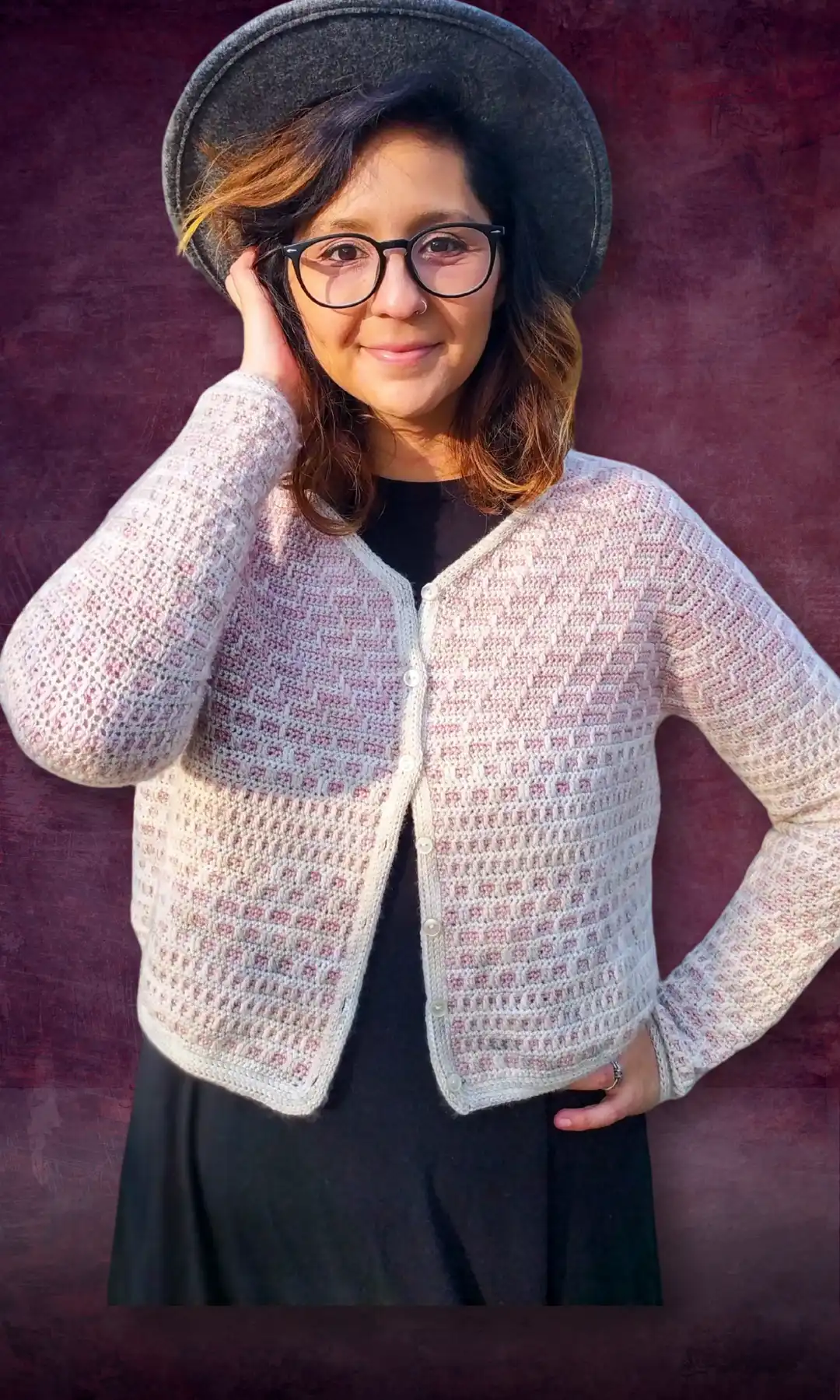 Kitzbuhel ˈkɪtsbyːl is a small alpine town in the middle of the Austrian Alps known for its skiing and mountain scenery. During Spring, when the snow is almost gone from the mountains and the sun sets, the snow glows in many colors against the dark forest and the lights from the town twinkle in the air. It’s truly a magical sight and it’s the inspiration behind the Kitzbuhel cardigan and its pullover counterpart. It is a top-down raglan style cardigan, completely seamless, worked fully in Standard Mosaic Crochet. It’s an entertaining project that allows you to play with color but with a rhythmic repetitive pattern that is easy to memorize.