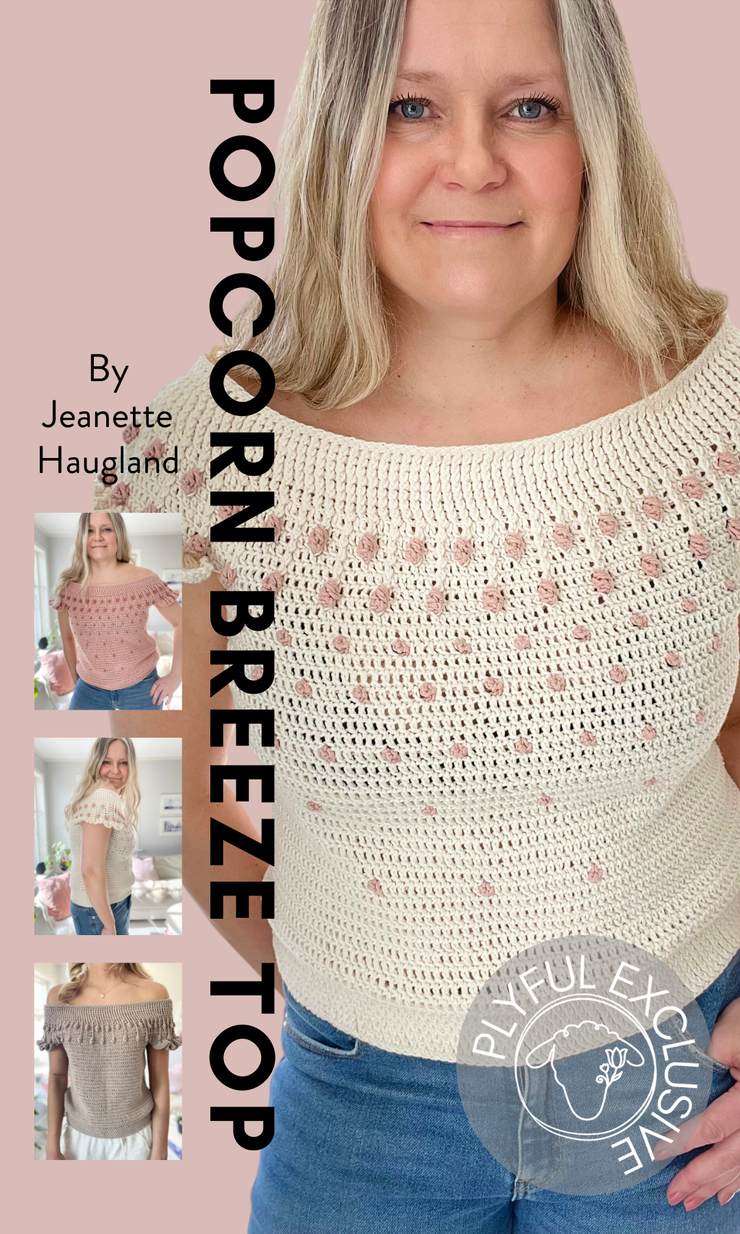 The Popcorn Breeze Top is a fun to make and wear summer t-shirt. It boasts a lovely combination of textured stitches that will keep you entertained and that look super cute. Wear it like a normal tee or over-the-shoulder for a more flirty look! And play with color or keep things neutral!