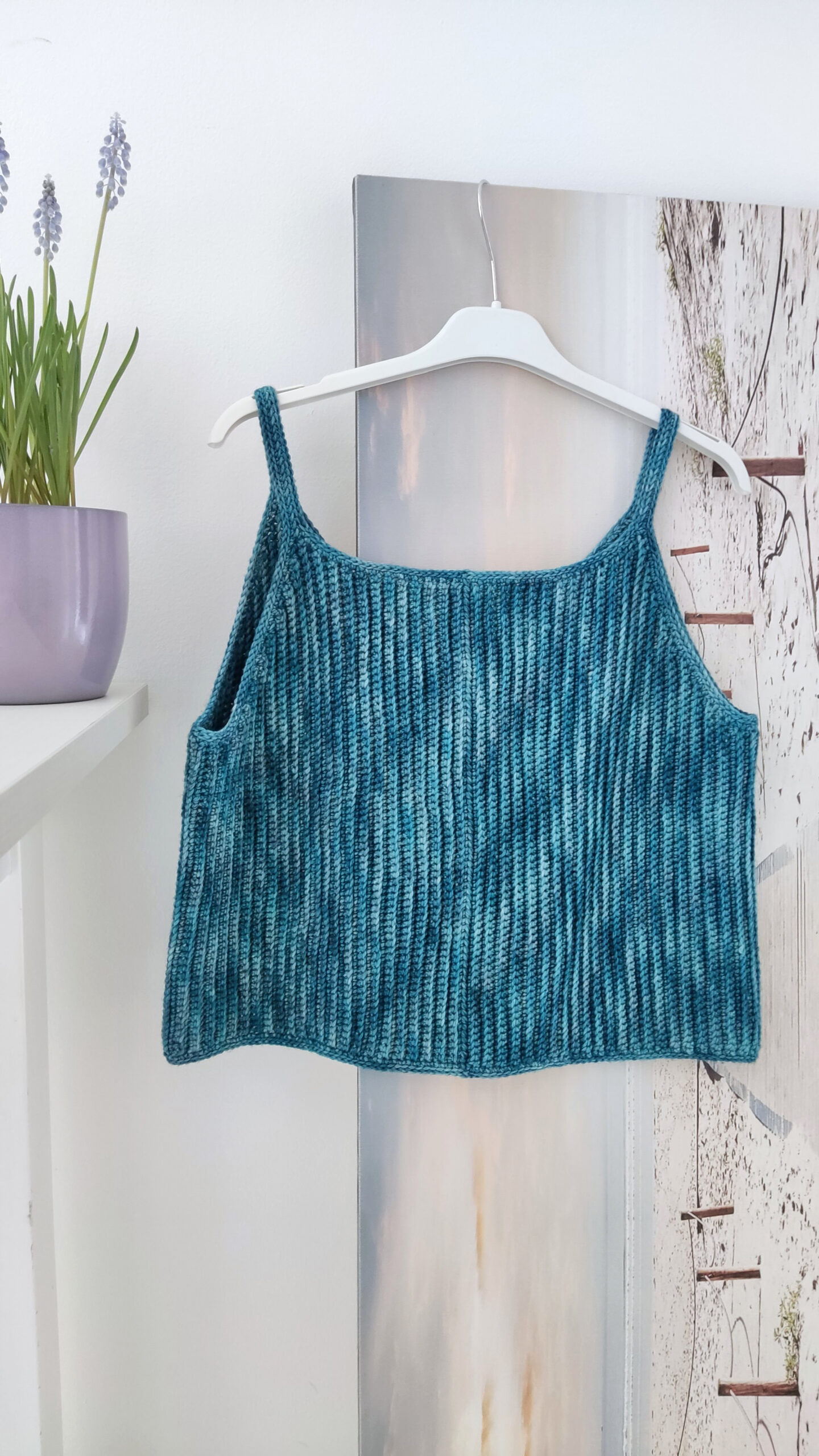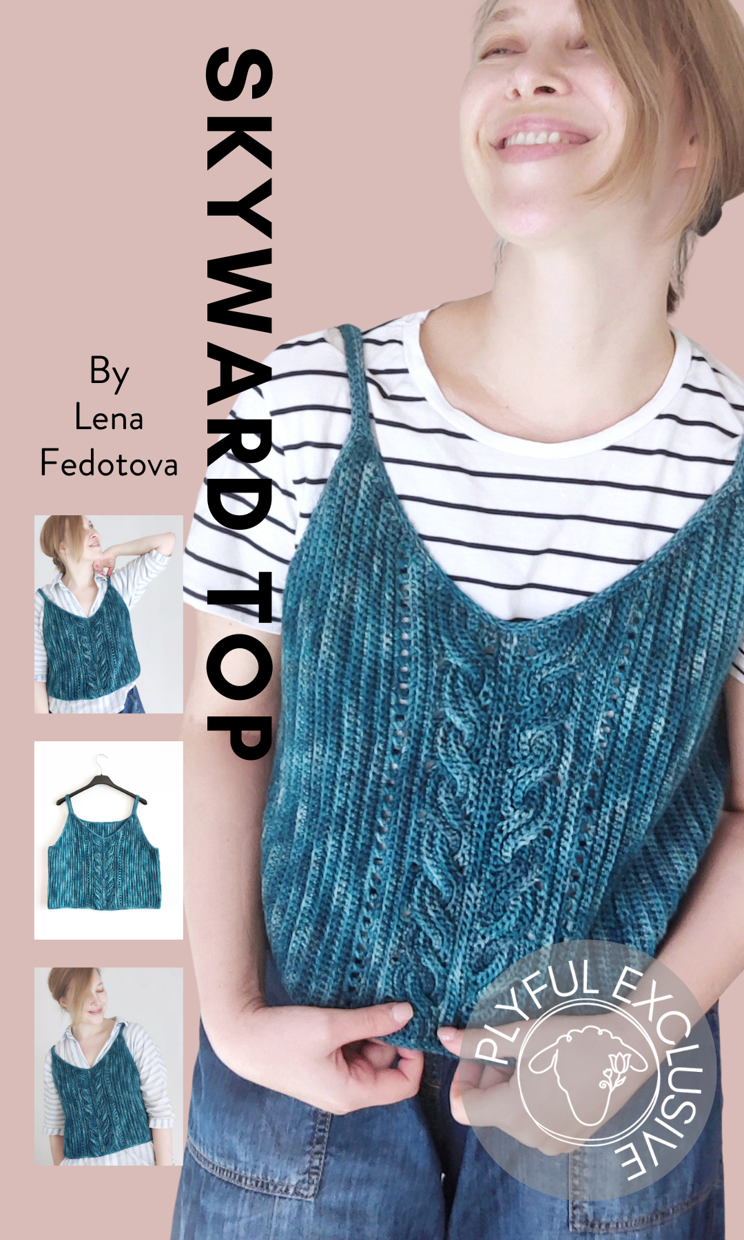 Skyway is a fun crochet top that is both easy to make and easy to adjust and also offers a lot of fun and learning along the way: beginning with working in two directions, smooth decreases and increases along the neckline and armholes and finishing up with neat edgings and straps.