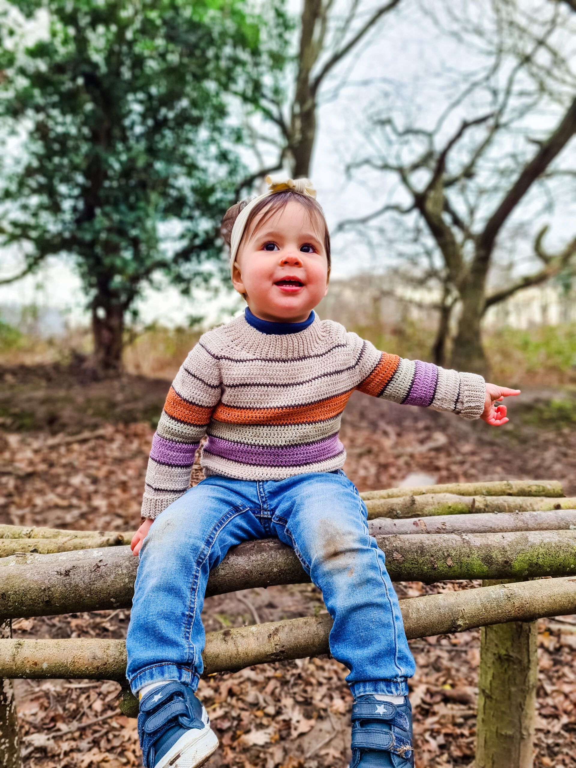 The pullover can be made to desired length and the sleeves are loose and comfortable for playing arms. The thin striping throughout allows for an opportunity to be playful with color and stash bust, while creating a classic garment that belongs in everyone’s wardrobe. The pattern includes video tutorials and size-specific progress tables that make crocheting this jumper a breeze!