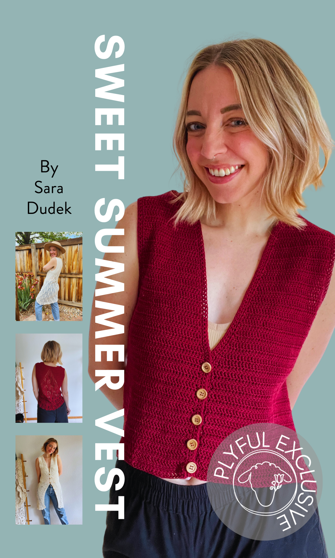 Red Cropped Vest: WeCrochet Curio Size 3 thread (fingering weight, 100% Mercerized Cotton; 295yds/100g): Hollyberry, 3 (3, 3, 4, 4) (5, 5, 5, 5) balls.