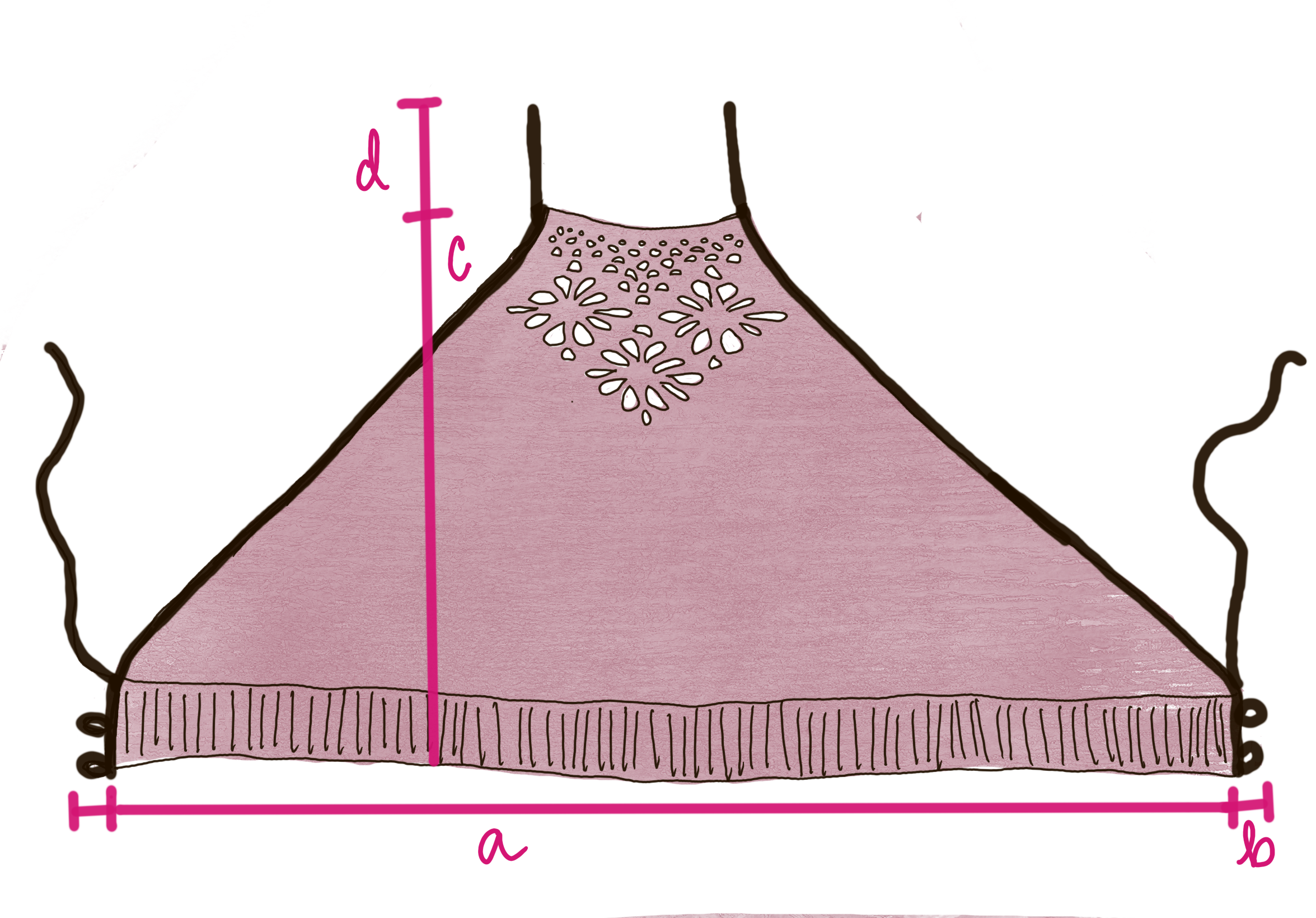 d) Length from shoulder to hem:39 (40, 5, 43, 44) (45.5, 46.5, 48, 49) cm / 15½ (15¾, 16¼, 16¾, 17¼) (17¾, 18¼, 18¾, 19¼) in